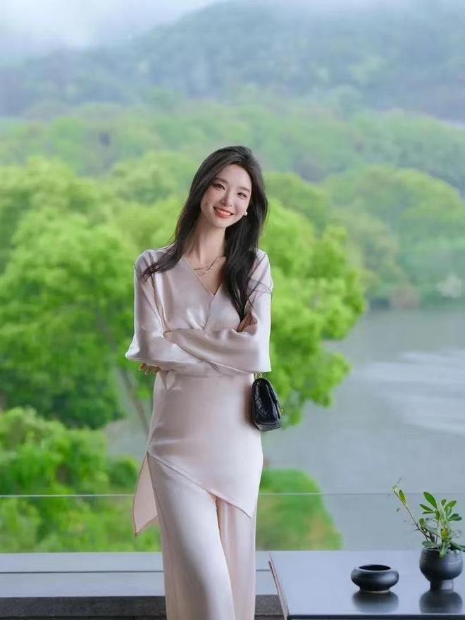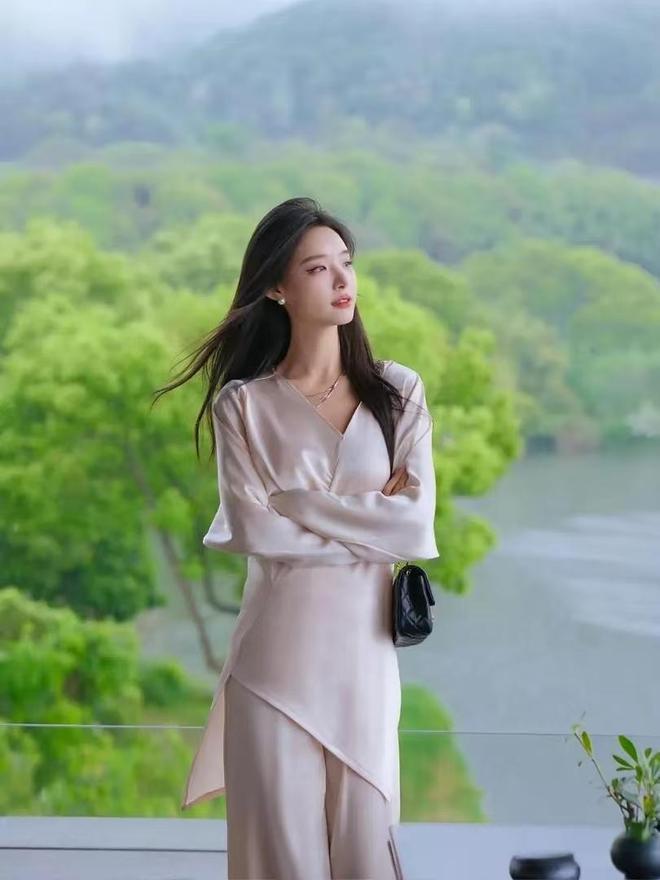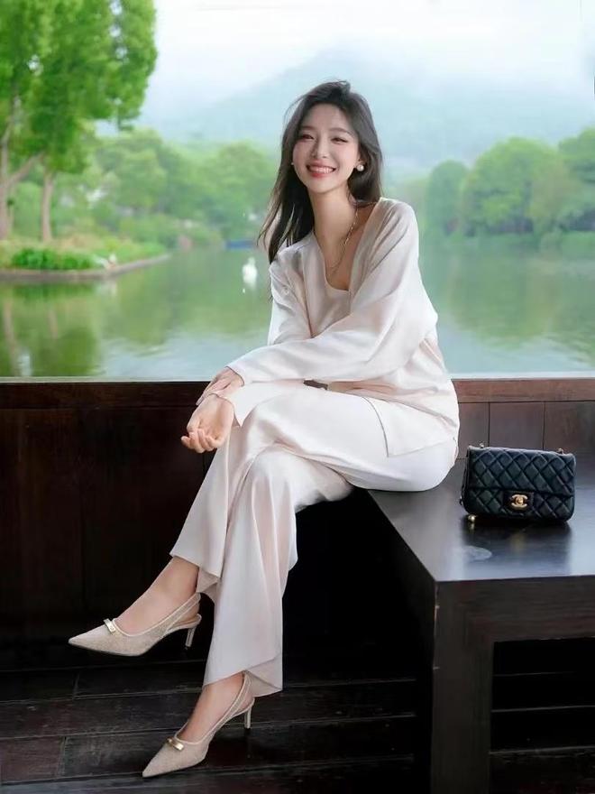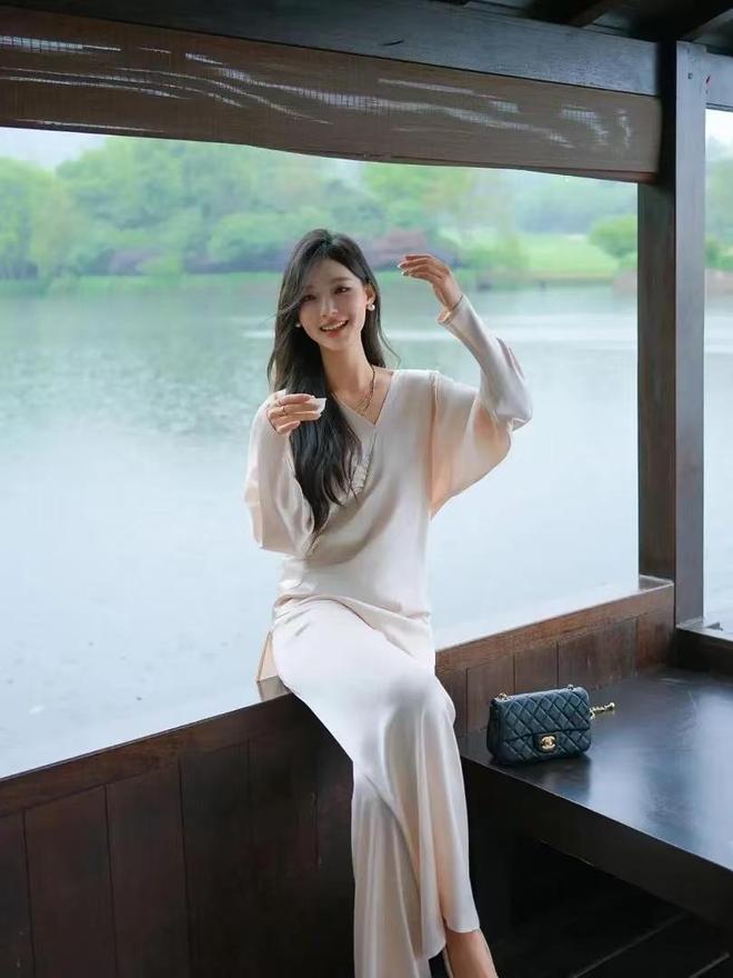找把长椅或台阶坐下,双腿并拢斜放,包包挨着腿边当配饰。手轻搭膝盖,戴珍珠耳环的记得侧脸45°——耳环若隐若现才高级!雨天光线暗?正好让皮肤自带磨皮效果。